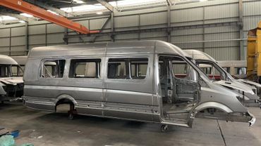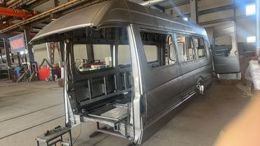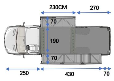Five Stars RV LLC manufactures modified Mercedes-Benz Sprinter cab chassis, and the body is exactly the same as the Sprinter VAN. It is formed by die stamping and automatic welding, and after electrophoresis, it will not rust for a long time. Compared with the fiberglass body spliced by hand, it is more solid, stable and quiet; the slide-out box frame is made of aluminum alloy to reduce the weight of the body.